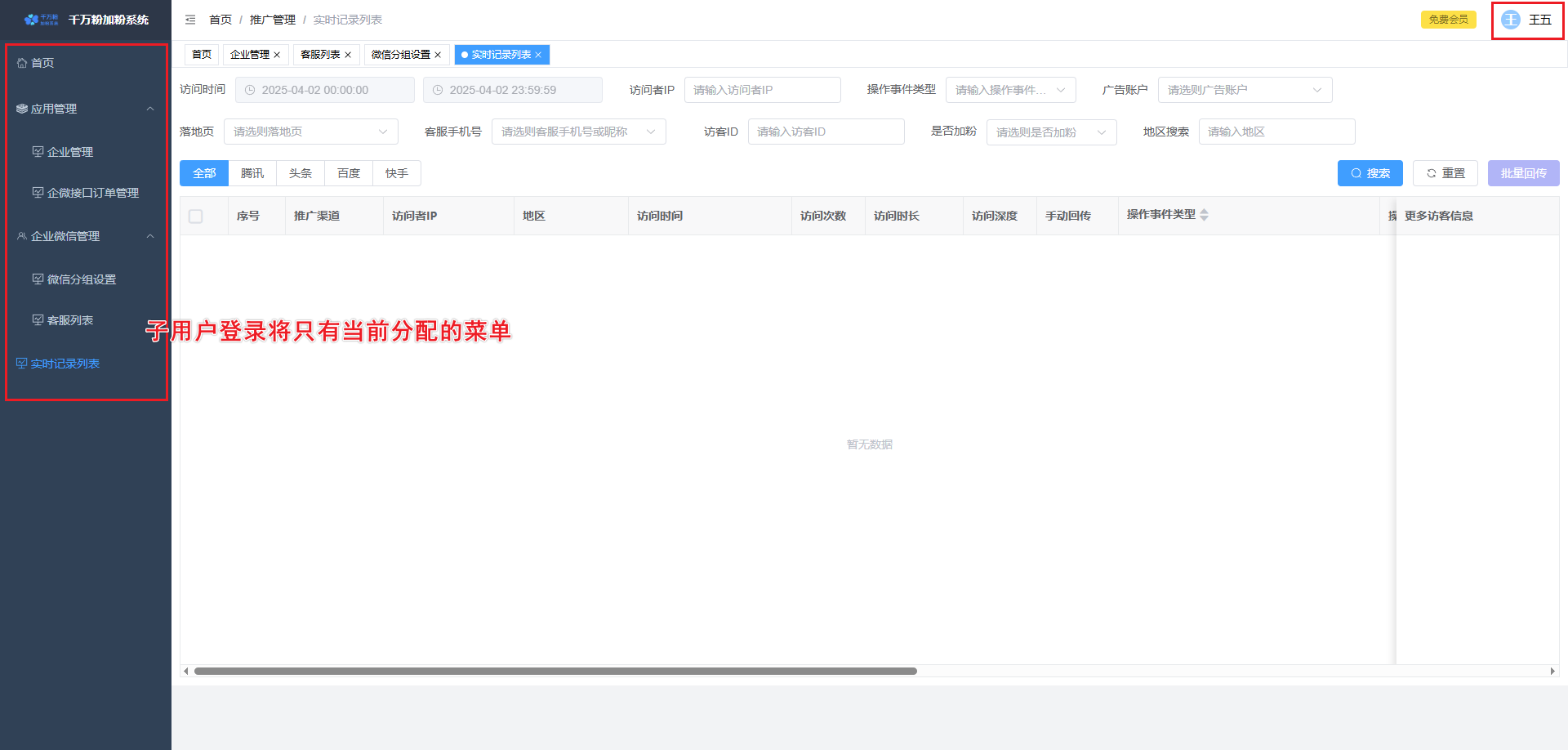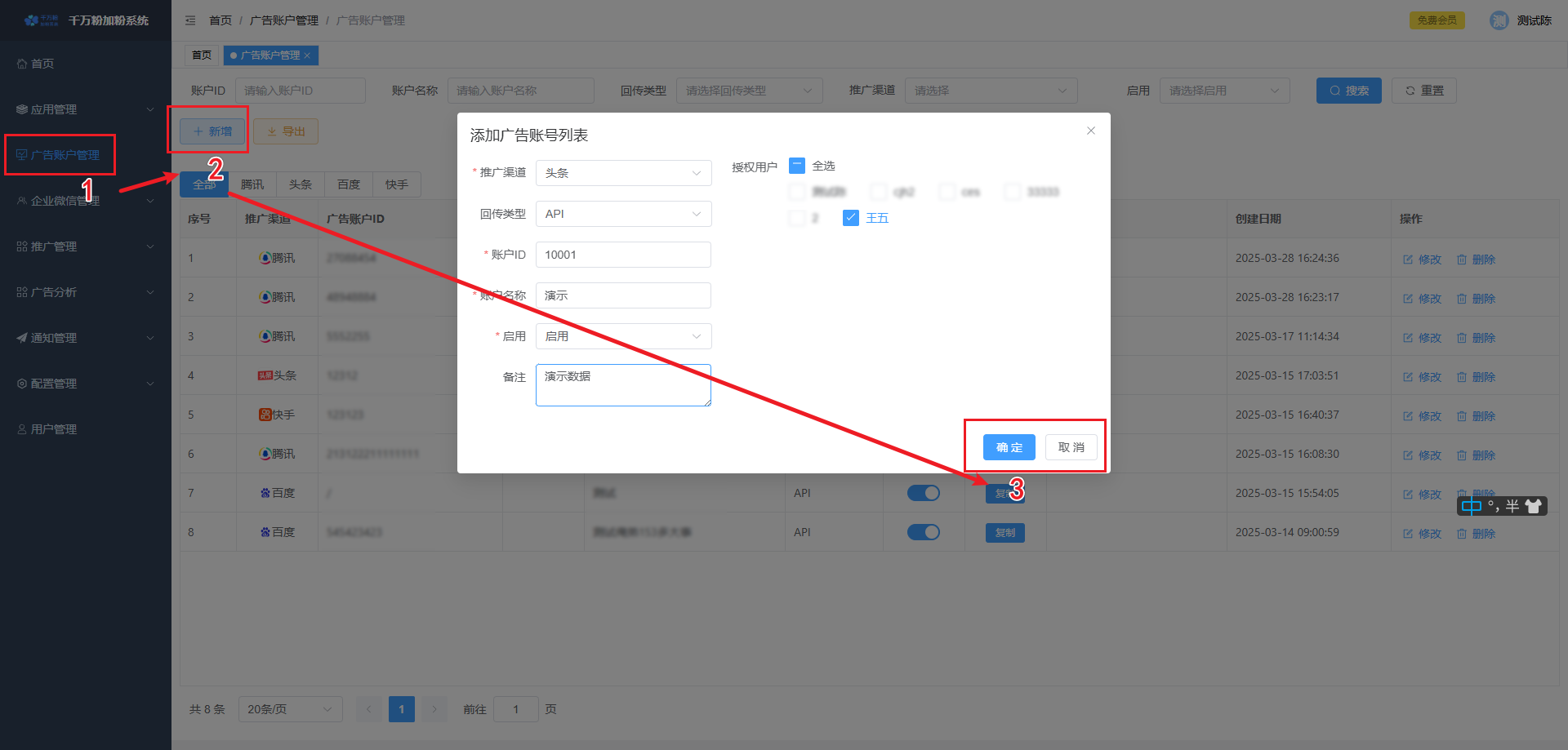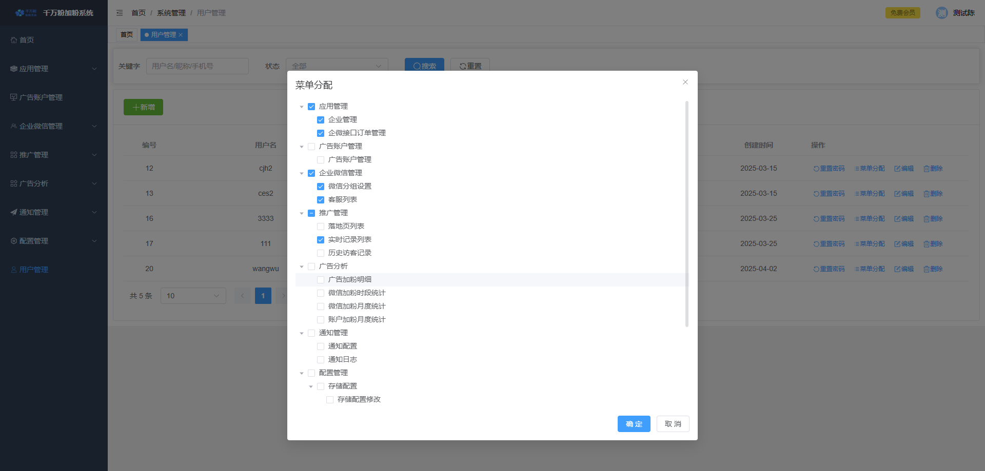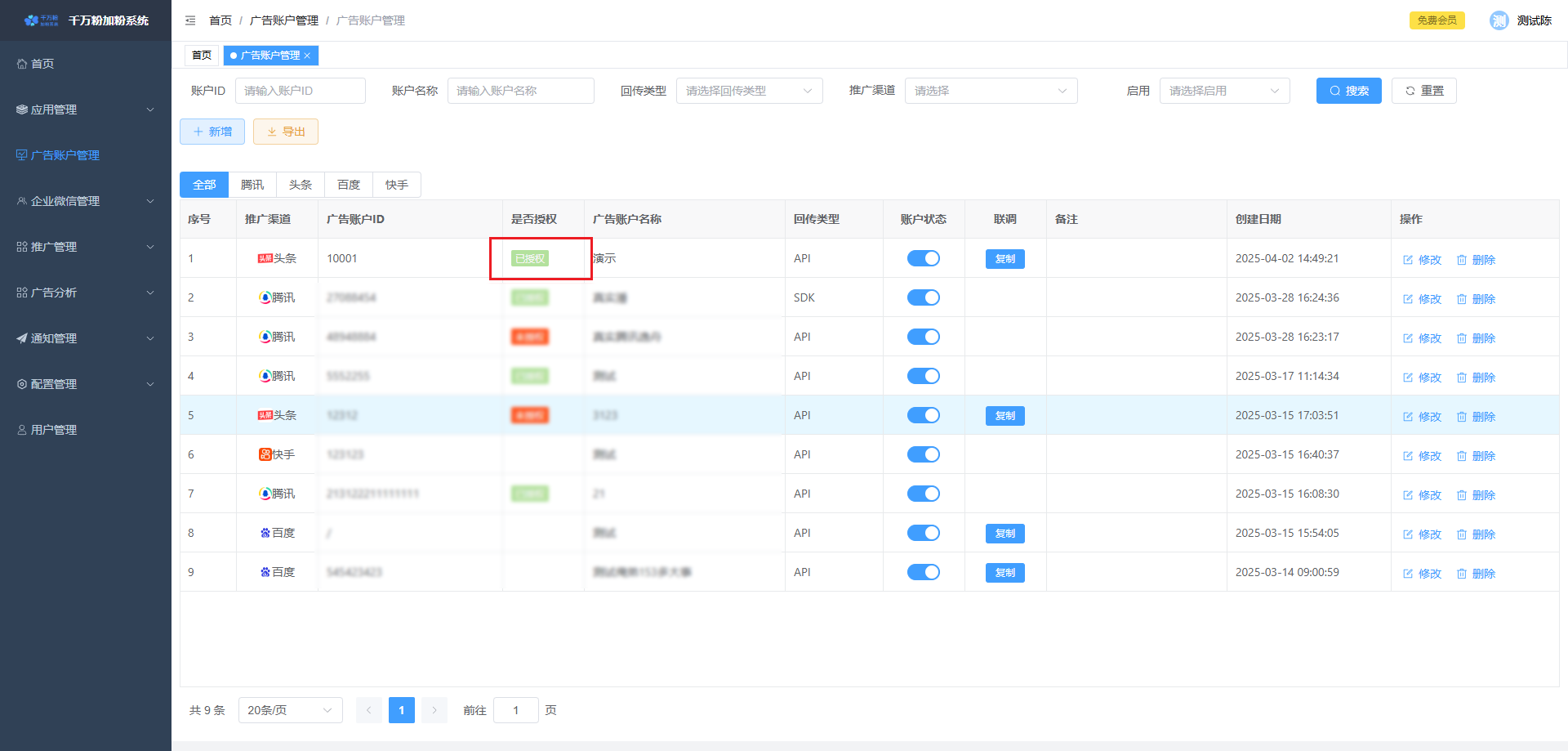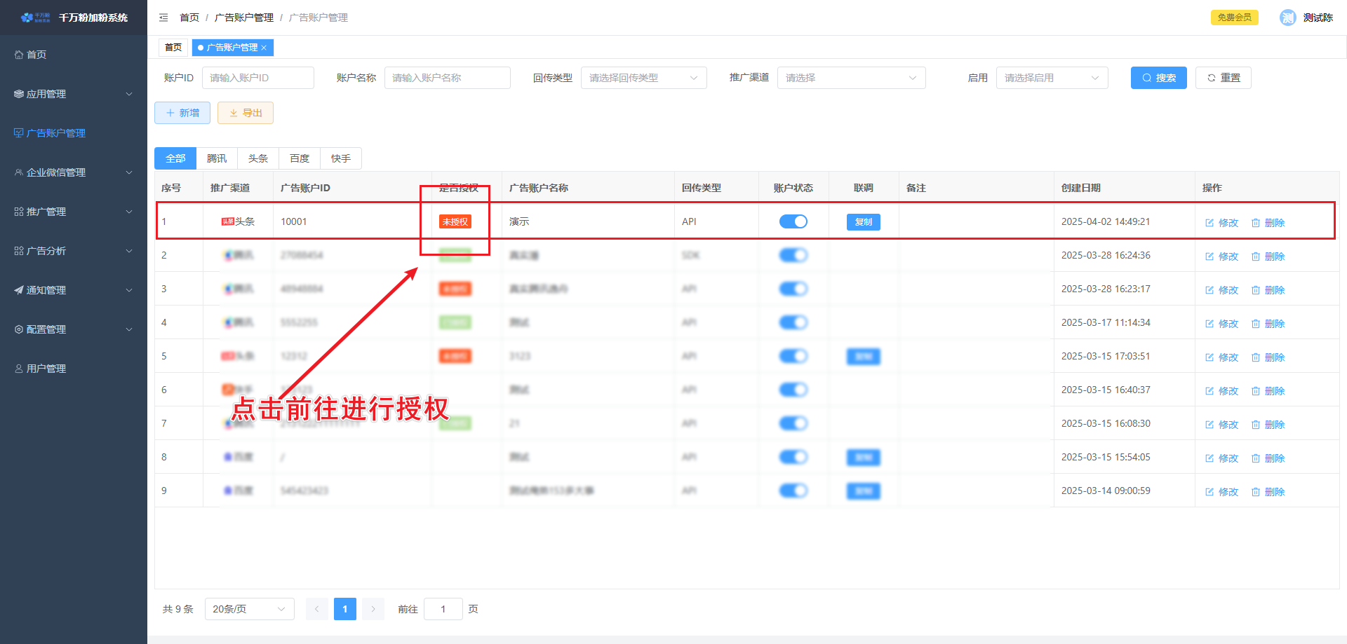 此页面可对落地页进行添加,设置微信加粉, 设置转化回传