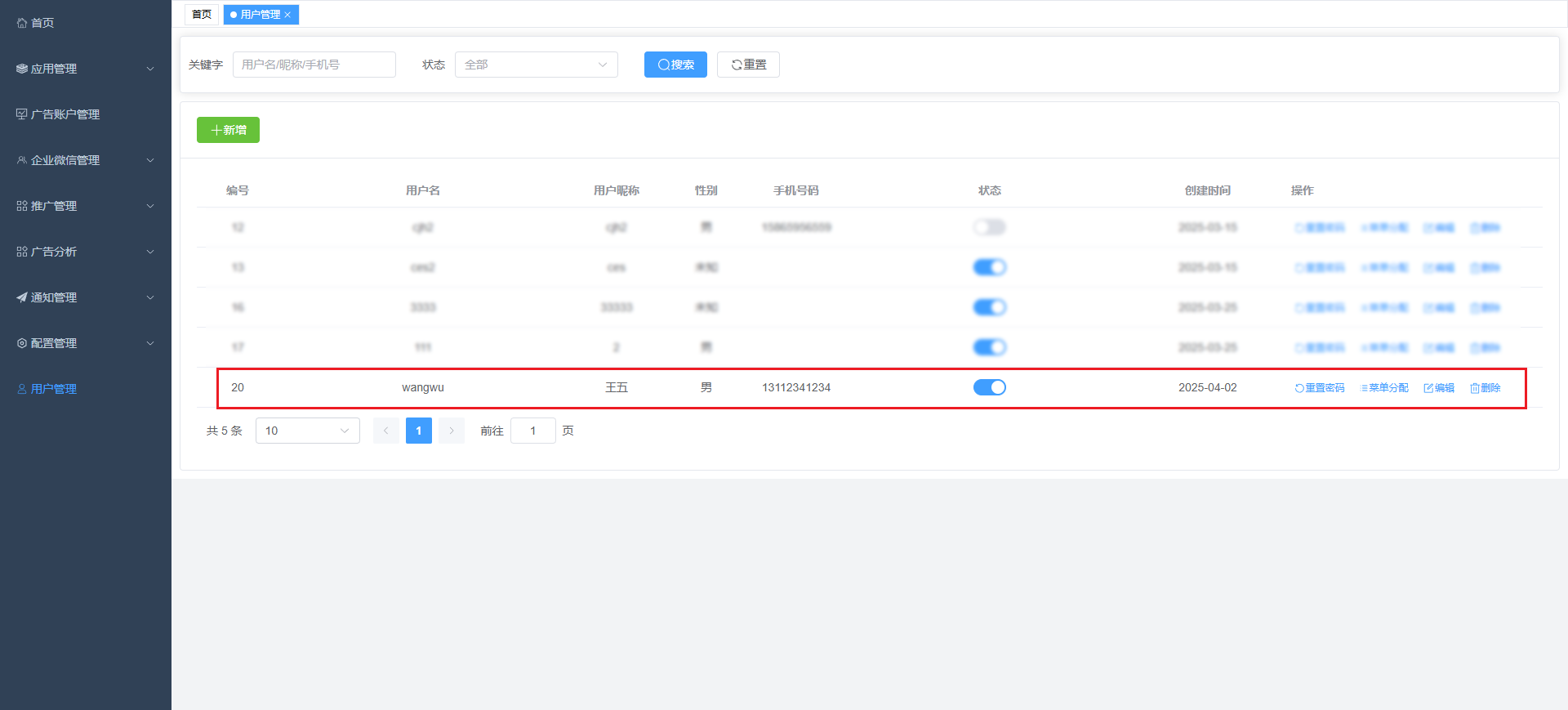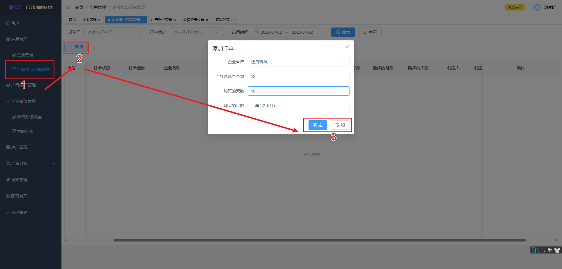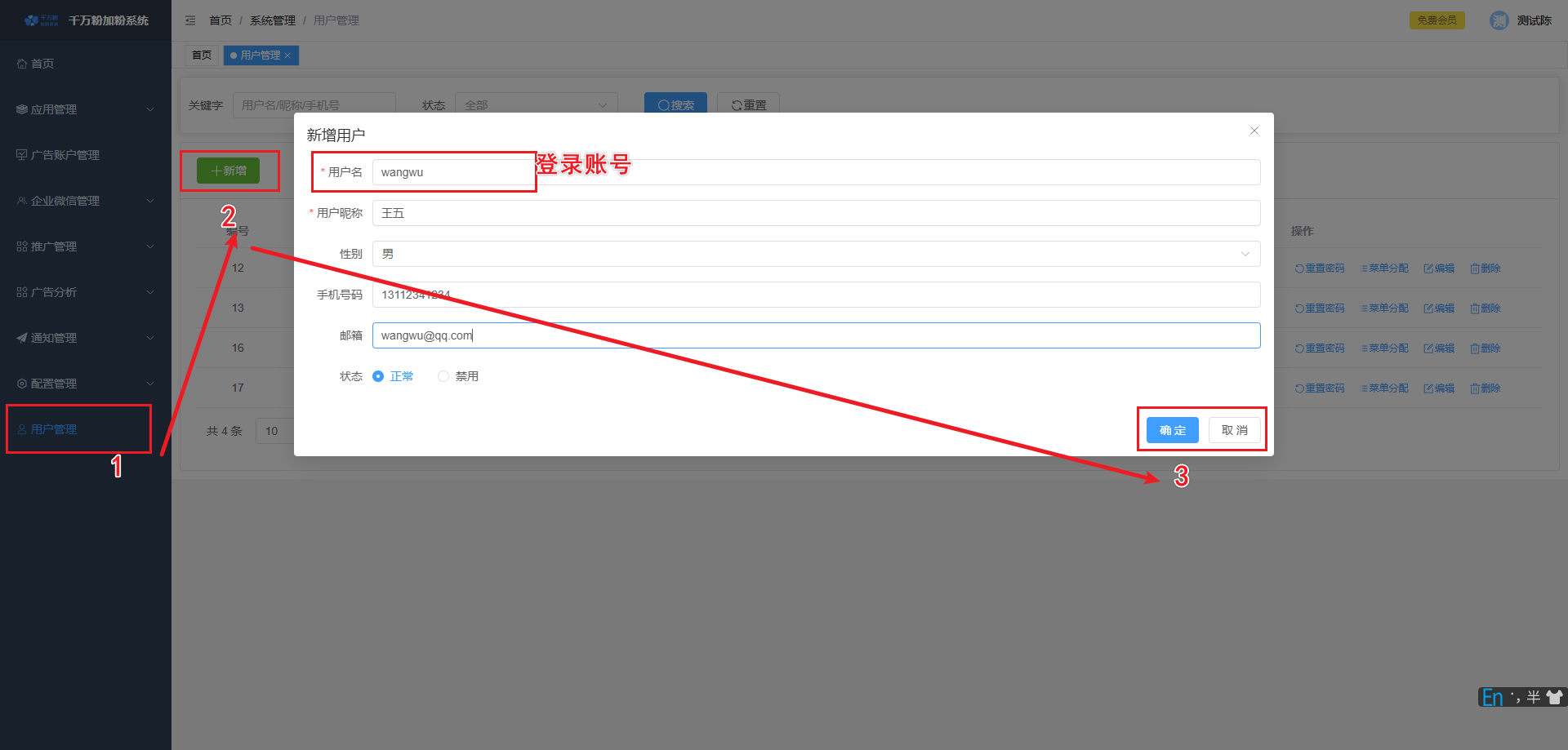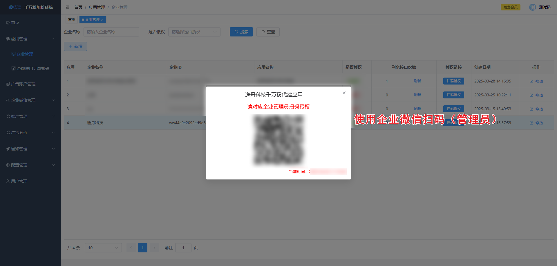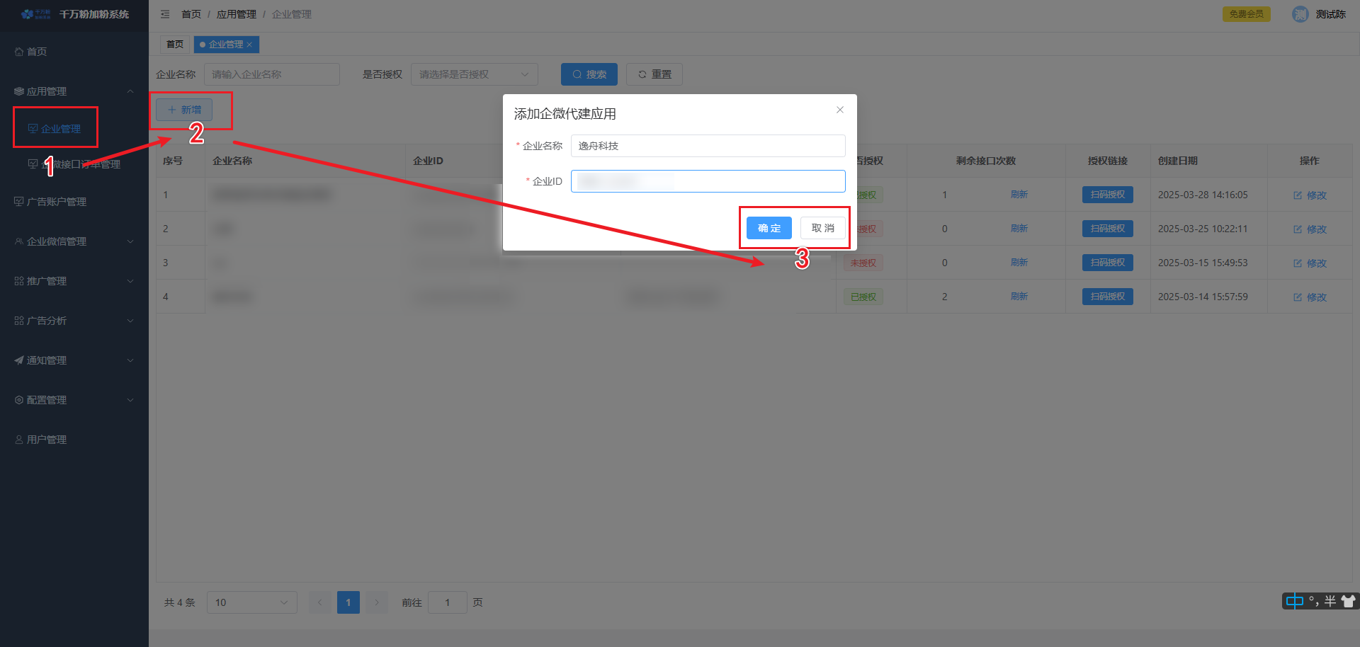 此页面可对落地页进行添加,设置微信加粉, 设置转化回传