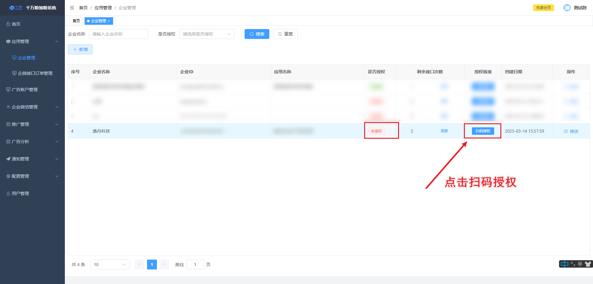 2-1:在页面找到需要设置的落地页,点击微信加粉栏相对应的设置按钮