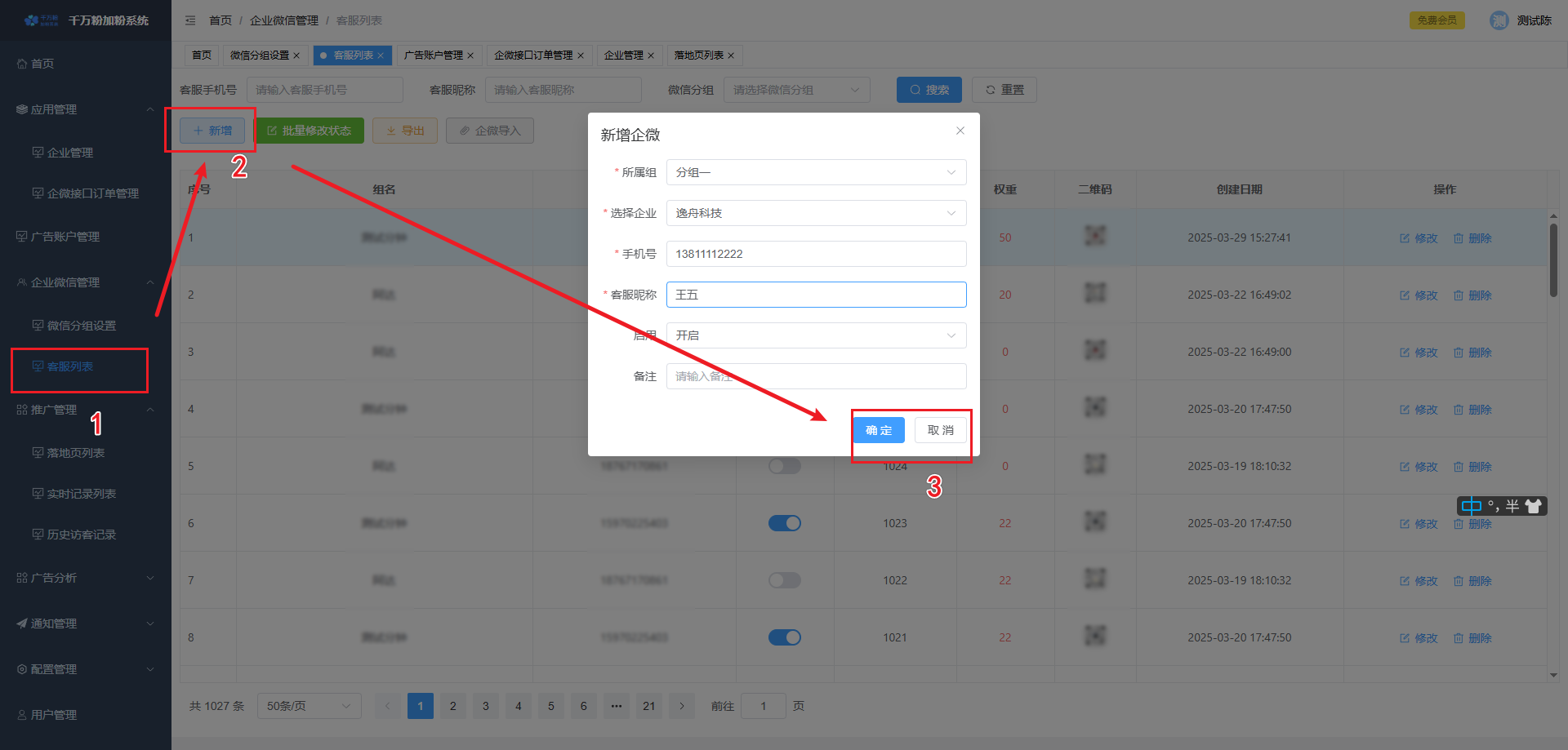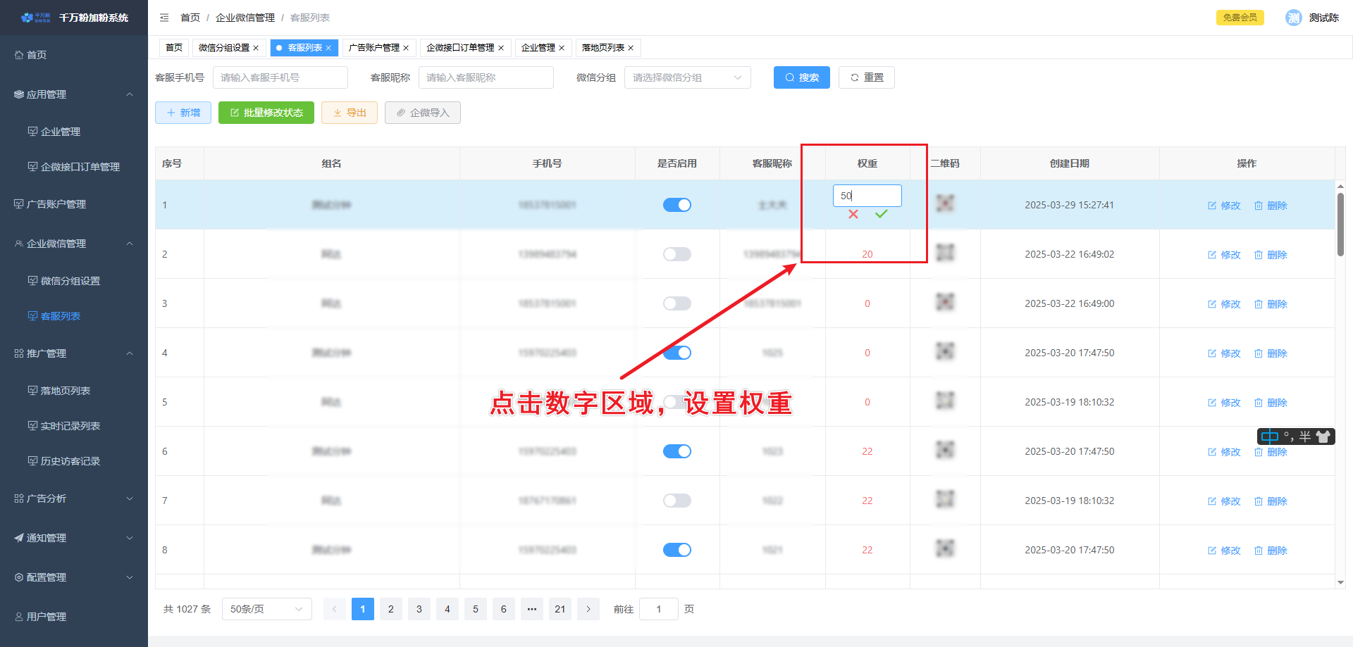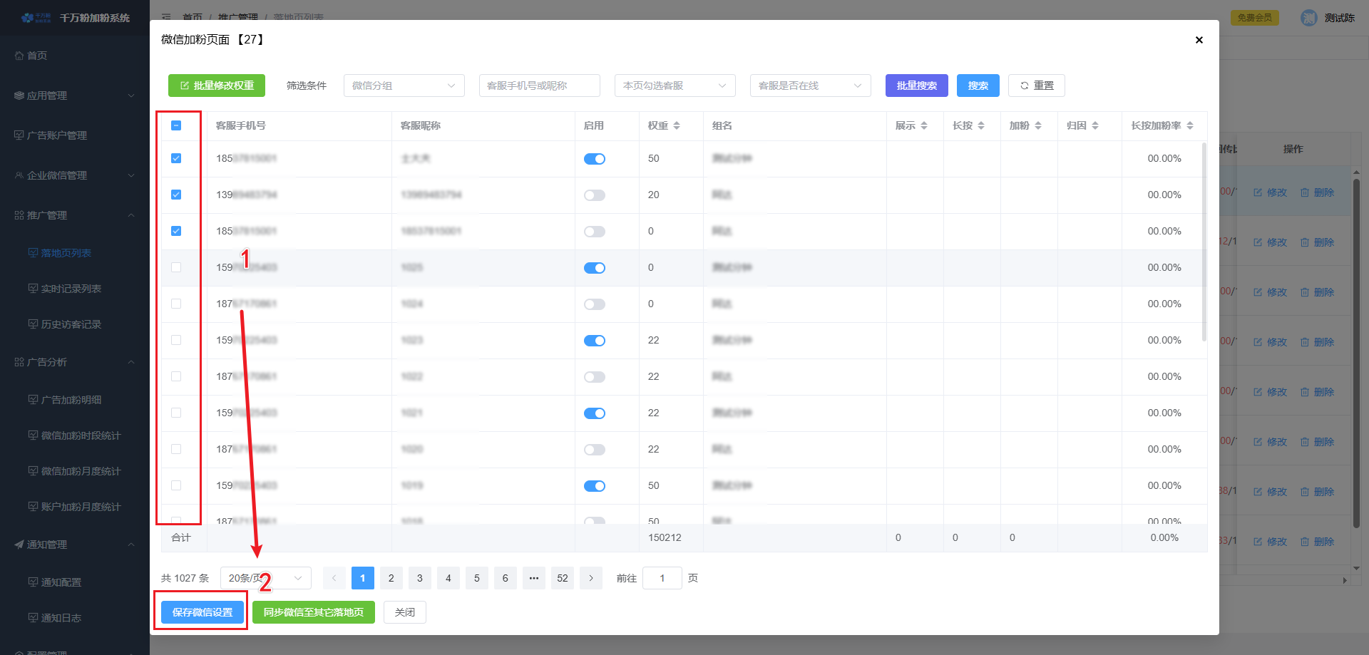 设置微信加粉:为落地页指定客服微信