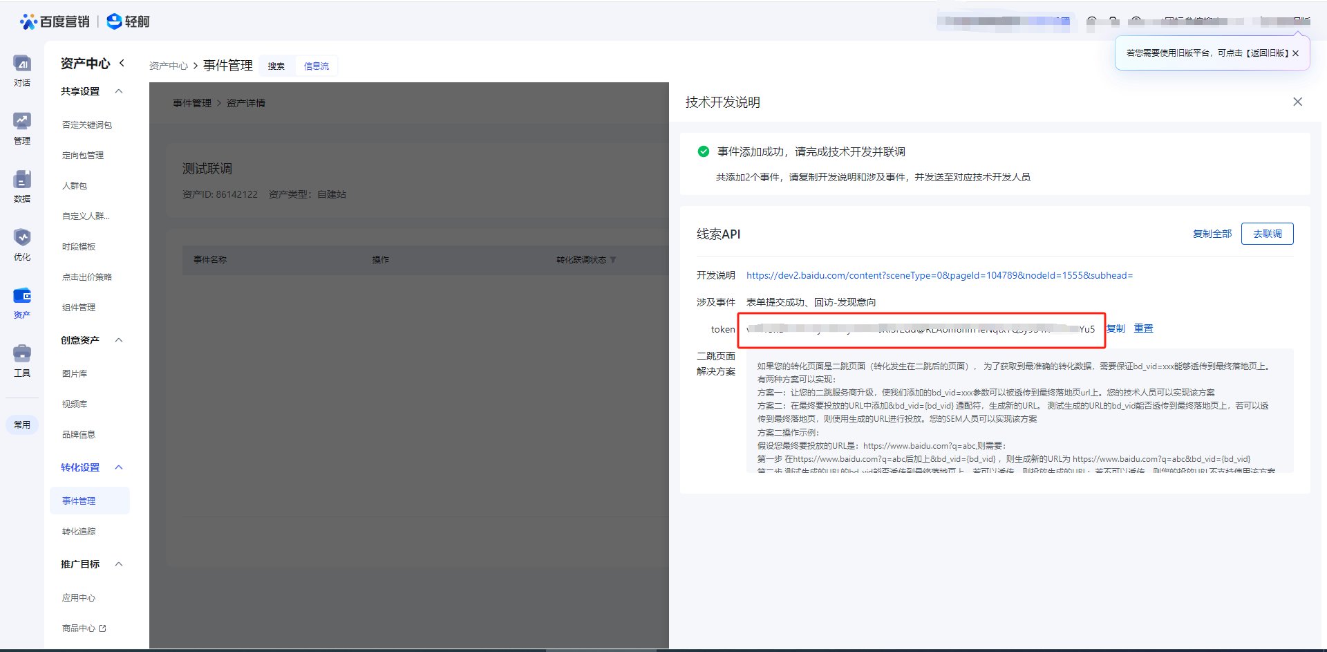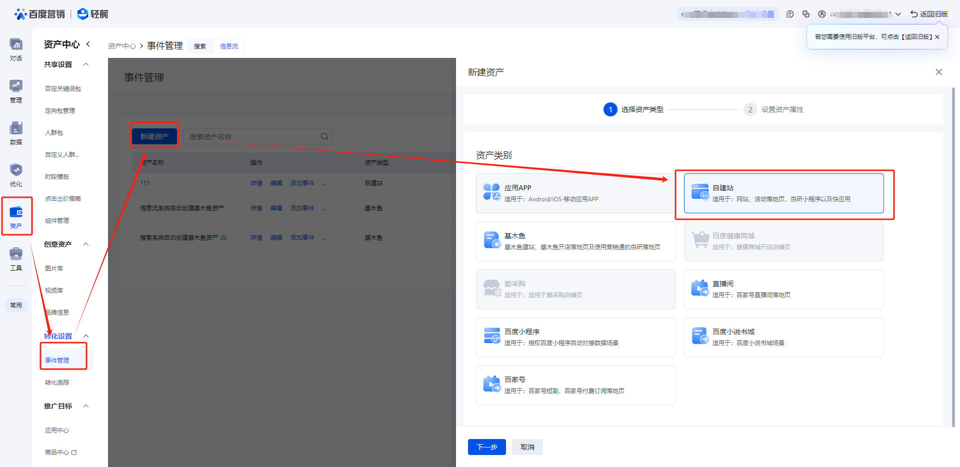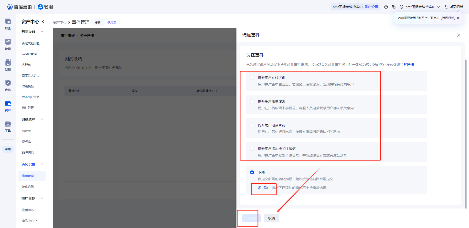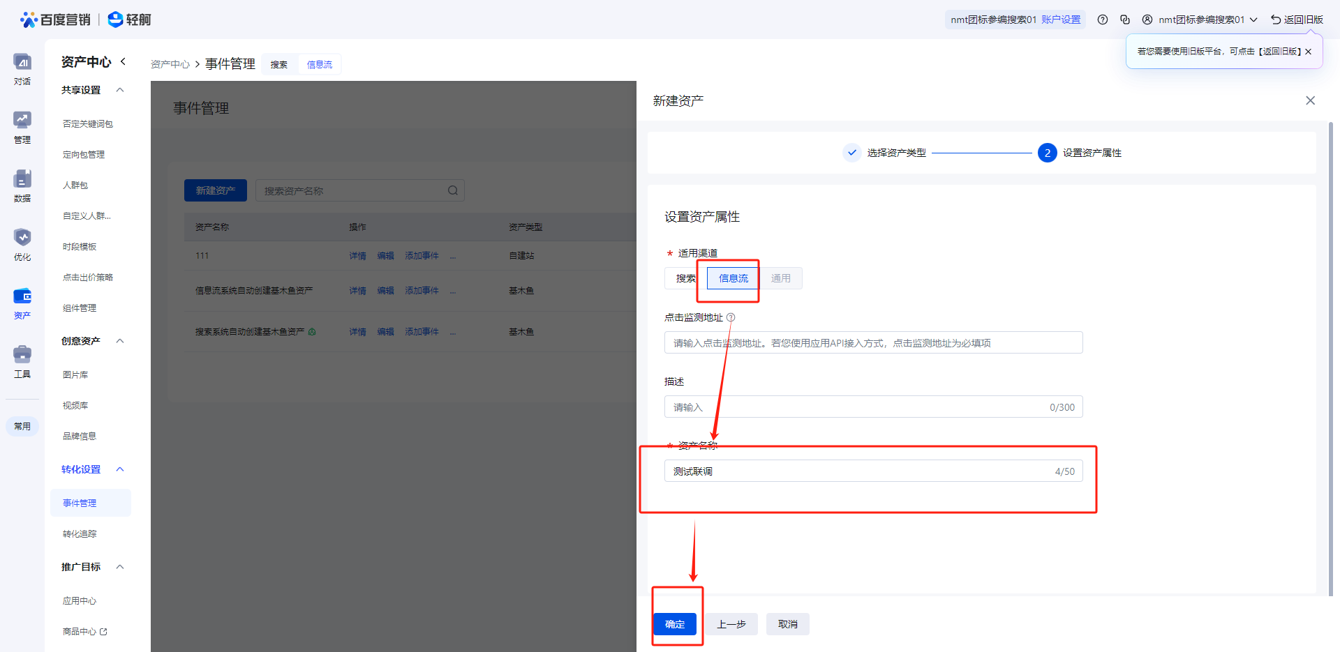 设置转化回传:设置所需监听的用户行为,将其返回至广告平台,优化推广效果。